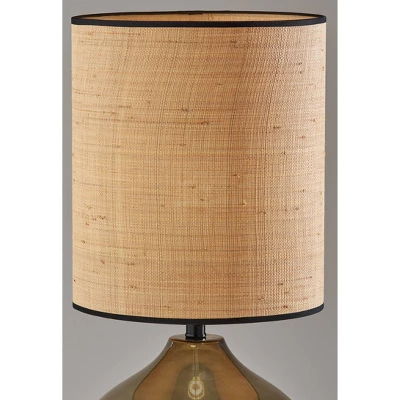 Introduce a relaxed, easy vibe to your home with the coastal design of the 28.5″ tall Emma table lamp. Featuring natural elements with its dark green glass base and a natural woven rattan shade, this lamp imbues any space with warmth and light. The tall rattan drum shade softly disperses light and is trimmed in black fabric along the top and bottom, complementing the black neck. A 5′ clear cord runs down through the center of the round glass base for a truly unique look. Easily operated by a rotary socket switch, the Emma table lamp powers a 100W bulb. This lamp is also available with a clear base and steel neck, and both color options are offered in a smaller, 23.5″ tall size for the perfect lighting solution to any space.