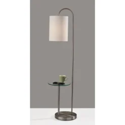 Adesso Amira Shelf Floor Lamp Steel: 64″ High With Storage Shelves, ETL Listed, Polyester Shade