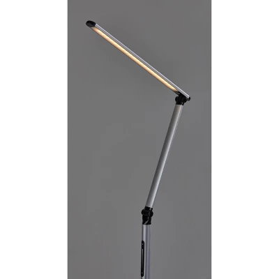 This high powered, high-tech, modern task floor lamp is the perfect solution to any workspace. Complete control of the light intensity and color allows you to customize the light to your needs at any time of the day. Whether you are working, reading or relaxing, the 5 light color temperature modes provide you with various options to suit your environment and mood. Adjust the light intensity with a sleek slide dimmer switch offering endless brightness options. An adjustable arm with two joints allows for 800 lumens of flicker free, energy efficient LED light to reach any area of the workspace. A sleek, modern silhouette finished in silver and black offers added sophistication.